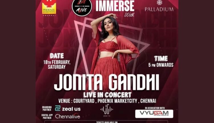 Chennai (Tamil Nadu) [India], February 11: 11th February 2023: Chennai Express fame singer Jonita Gandhi is coming up with her grand music fest by the name “Immerse with Jonita Gandhi” happening on February 18, 2023, at Phoenix Marketcity, Chennai. It is a great moment for music lovers to groove to the music of JG.